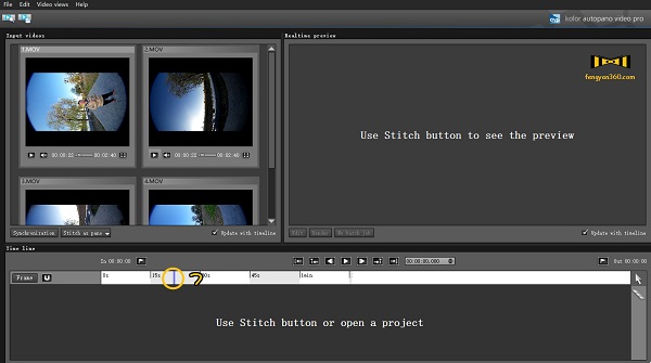 3、拼接视频素材。把当前帧标签拖动到一个你觉得所有画面都相对静止、清晰而且特征明显的时刻,点击圈3的位置(拼接按钮)里面的那个小三角,会弹出一个下拉菜单,选择最后一个选项“Stitch as ...”,然后会弹出一个对话框,如下: