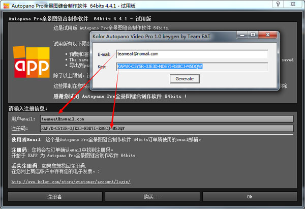 9、然后弹出注册界面,这里需要输入邮箱地址,注册码生成号,运行“KG_ttrar.exe”,这里点击“Generate”生成序列号