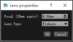 这个对话框比较简洁,我就不画圈了。上下两个输入框,上面那个输入我们的镜头焦距,请注意这个焦距可能不是你镜头标称的焦距,而是将对角线视角换算为传统35mm胶卷相机的等效焦距。这个焦距可以只是一个估算值,AVP在拼接的时候会根据自动识别的控制点位置对焦距值进行重新计算。但是这个估算值也不能太离谱,对应我们蜂眼相机,你可以输入11.5mm。