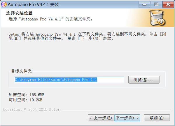 4、之后点击浏览按钮选择软件安装路径,默认C:\Program Files (x86)\Kolor\Autopano Pro 4.4,点击下一步