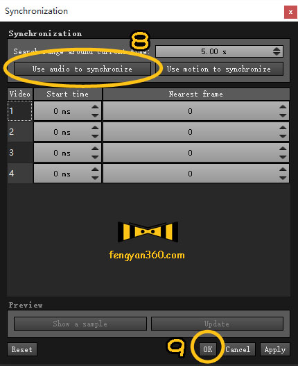 此时点击圈8的位置(音频同步按钮),等AVP自动同步完毕后,再点击圈9的OK按钮即可同步完毕。