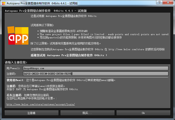 10、将如上所得的邮箱和注册码,分别对应的复制到软件中,点击ok即可完成