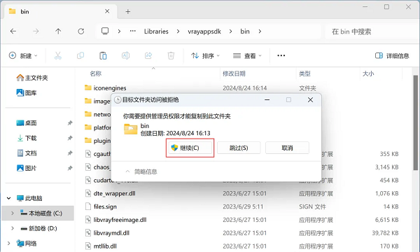 8、打开路径:C:\Program Files\Chaos Group\V-Ray\V-Ray for Revit\Libraries\vrayappsdk\bin。