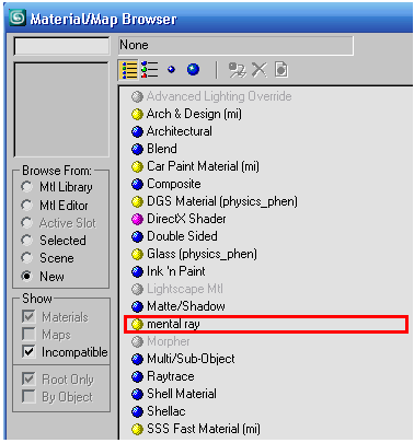 material map 选择mental ray材质