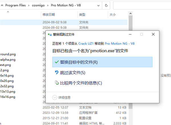 2、安装完成不要运行,复制Crack UZ1文件夹到Pro Motion NG目录下,覆盖文件