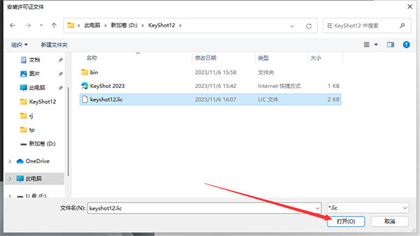13、打开前面注册机生成的keyshot12.lic文件