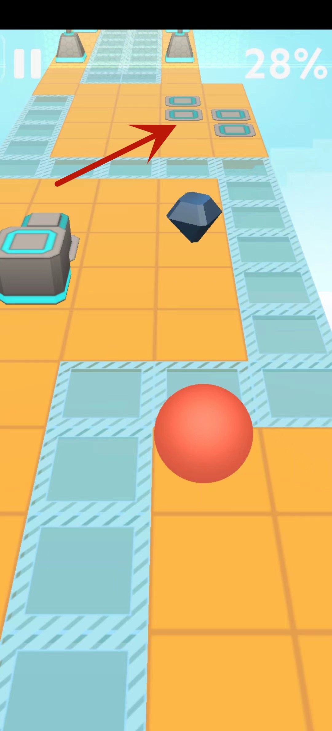 部分方块会移动,注意不要让小球踩空哦!