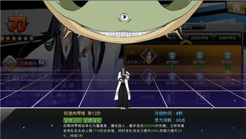 前面我们也提到过,卯之花烈擅长回道。卍解卯之花烈的二技能仍然与回道有关。回道肉雫唼可以将卯之花烈的斩魄刀实体化为魔鬼鱼,通过撞击敌人造成大量伤害,同时为所有队友回复一定比例的最大生命值,且在5秒之内攻击防御都有所提升。