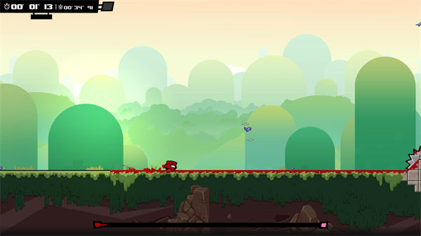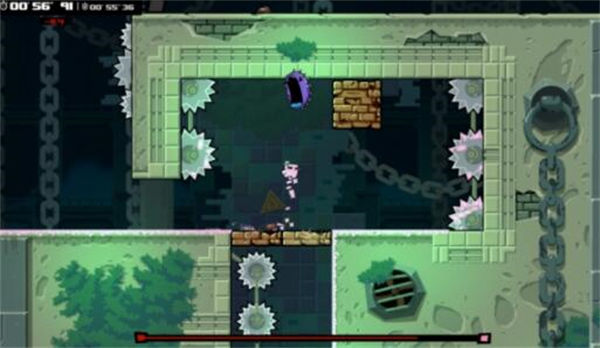 4、严格的时机判断。在超级食肉男孩永恒的游戏流程中,你需要把握好每一次跳跃和滑铲的时机,以此来躲过陷阱,抵达终点。这听起来是再正常不过的横版过关游戏模式,但当它与无法控制的角色行动结合起来,就会产生更复杂的化学反应。举个简单的例子,遇到需要“等待”的机制时,简单的停止操作、然后等时机到位时加速跑过去在游戏中是行不通的,因为角色时刻都保持在运动的状态中