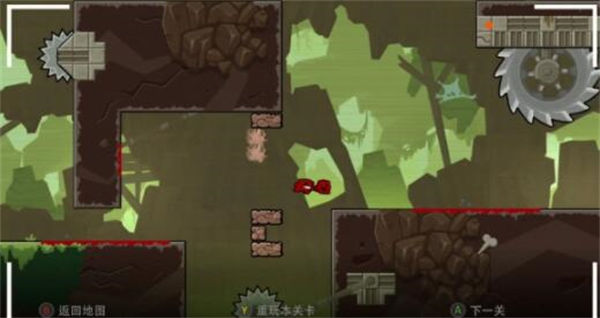 3、控件控件现在是两个按钮,您有一个跳跃,一个跳跃攻击,一个潜水和一个滑行。两个按钮并不意味着控制较少,这意味着我们设计了使用两个按钮的关卡。通过设计与控件互补的关卡,您可以得到令人惊讶的移动和精度。Super Meat Boy感觉很棒,因为关卡设计和控制之间的结合,Super Meat Boy Forever也不例外