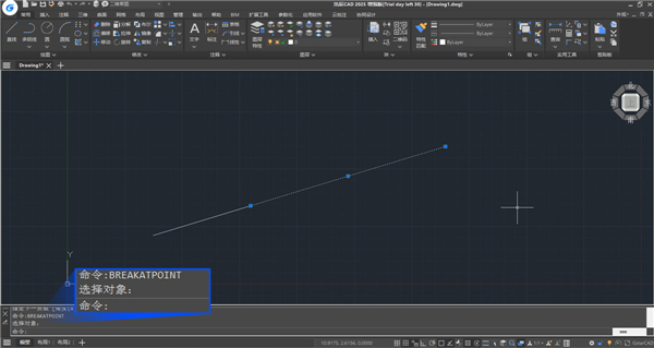 新增添加打断于点的BREAKATPOINT命令,将选定的对象打断为两个对象,方便用户可以通过输入命令、编写脚本和程序时对线进行单点打断。