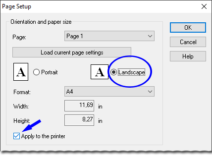 1、要更改页面方向,请选择菜单文件|页面设置…并在打开的对话框中将方向设置为横向。还要确定“应用到打印机”勾号处于激活状态