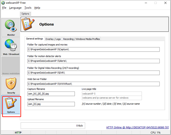 1、本地和远程平移和倾斜控制(Logitech Orbit、Creative LiveMotion! 和 IP 摄像机)2、支持 FTP/FTPS 和 HTTP/HTTPS Post