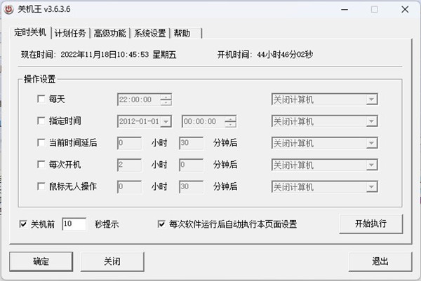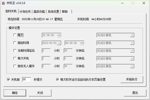 ★可执行的任务有:关机、重启、锁定计算机、提醒、打开文件、打开网址、执行程序、关闭程序等。