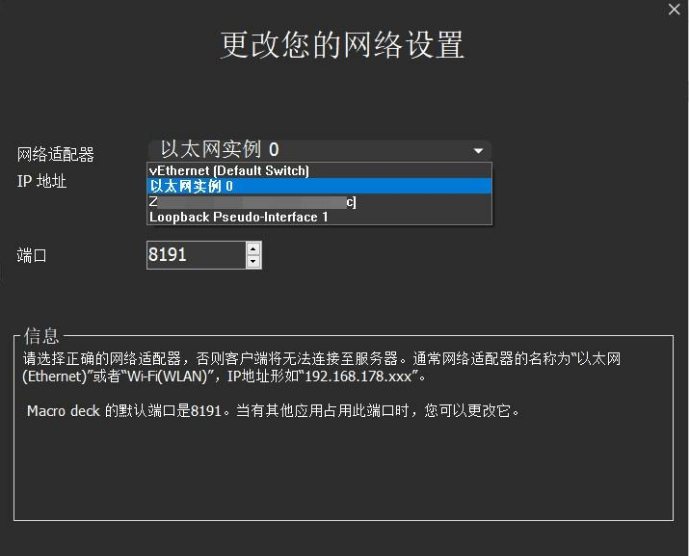 如果你有两块以上的网卡,比如有线和无线,那么就要看清楚再选择了,这决定了以后我们通过哪个网络来访问 Macro Deck 。