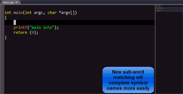 1、符号完成的子词模式匹配。这使得符号补全能够在子词上找到匹配的符号,例如,模式“house”可能匹配诸如“看家”、“DogHouse”、“GetHomeUserName”“HotOmeletsUsingSummerEggs”之类的符号