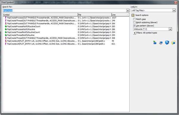 1、查询函数,变量,类,符号,定义等, 请使用 “Find Symbol”Alt+s y这个功能非常强大,支持Windows通配符,正则等查找方式,方便的查询各种Symbol,这个是我第一常用快捷键