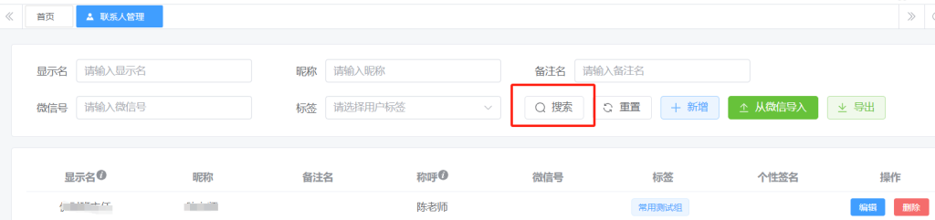 导入完成后,回到“联系人管理”页面,点击“搜索”按钮,可以检查导入的联系人信息