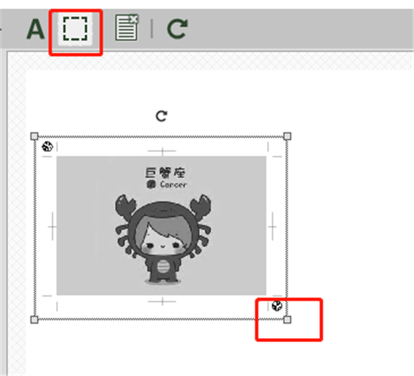 鼠标为“快照”工具状态时,按住四周其中一个触控点,拖拽图片可调节图片大小。按住图片顶部“旋转按钮”进行移动,可调整图片显示的倾斜程度。