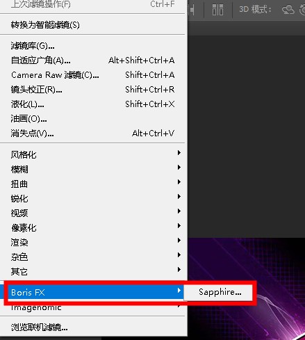 3、然后打开ps,就可以发现Boris FX Sapphire Plug for photoshop安装好了。