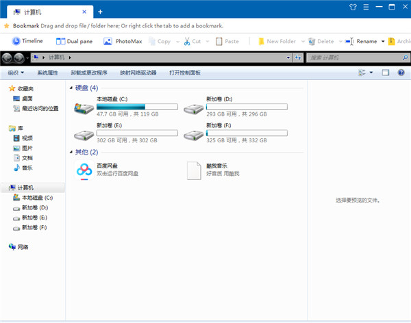 1、选项卡式浏览在默认的Windows资源管理器中,如果您同时打开太多文件夹,那么选择一个指定的文件夹会很烦人,因为它们都挂在任务栏附近。具有选项卡式浏览功能,就像谷歌浏览器或Mozilla Firefox等选项卡式浏览器一样,您可以从一个窗格访问所有文件夹