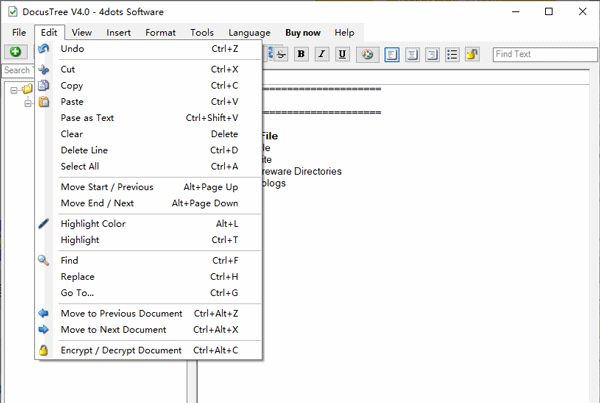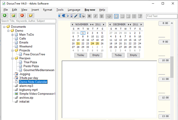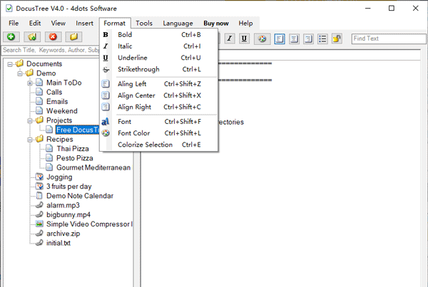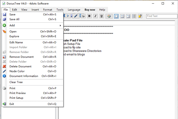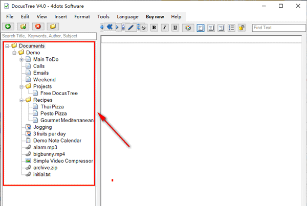 5、Docus Tree支持富文本格式(RTF)文档,Microsoft Word文档,PDF文档,ODT开放文档格式文本文档