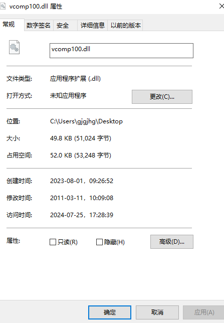 1、将vcomp100.dll解压出来;