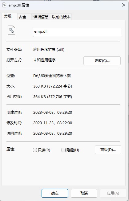 一、如果在运行某软件或编译程序时提示缺少、找不到emp.dll等类似提示