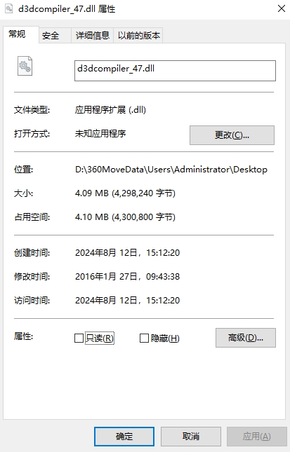 一、如果在运行某软件或编译程序时提示缺少、找不到D3DCompiler_47.dll等类似提示,您可将从本站下载来的D3DCompiler_47.dll拷贝到指定目录即可(一般是system系统目录或放到软件同级目录里面),或者重新添加文件引用。