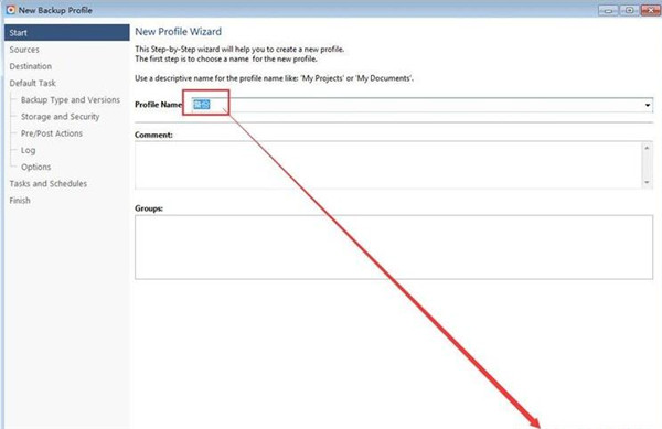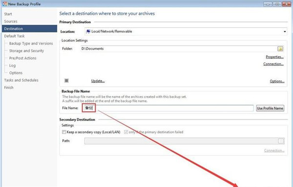 3、首先我们要设置任务名称,在这里输入了“备份”。然后点击[Next]继续下一步