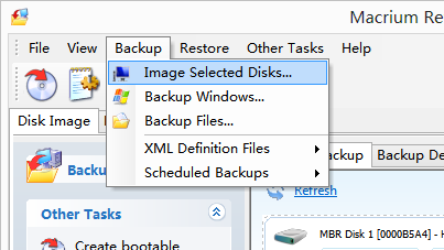 5、接着,教大家系统备份,通过菜单“back up”--》“Image selected Disks...”,推荐大家使用这个功能。