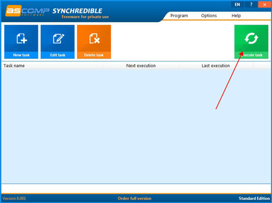 5、点击Synchredible主界面中的Execute task,执行任务,就可以开始执行刚刚新建的备份任务