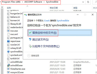 5、介绍打开Crack夹将“synchredible.exe”文件复制到软件安装目录中进行替换