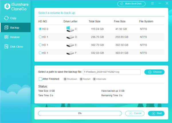 1、运行CloneGo,然后单击界面左侧面板中的Backup(备份)选项。