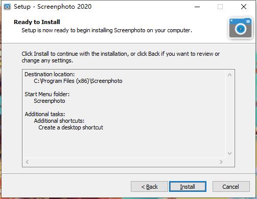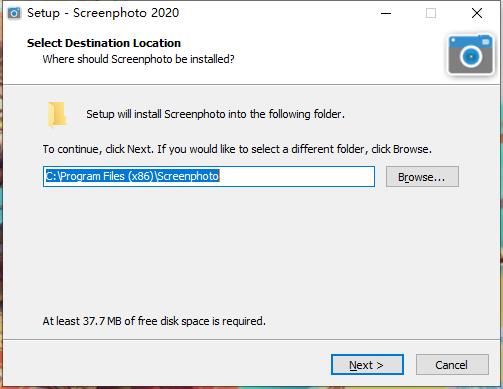 安装向导默认设置的软件默认安装路径为C:\Program Files (x86)\Screenphoto