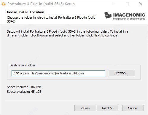 3、按默认目录进行安装,当然啦,如果你的ps安装到其他目录,可自行指定Plug-Ins目录下;