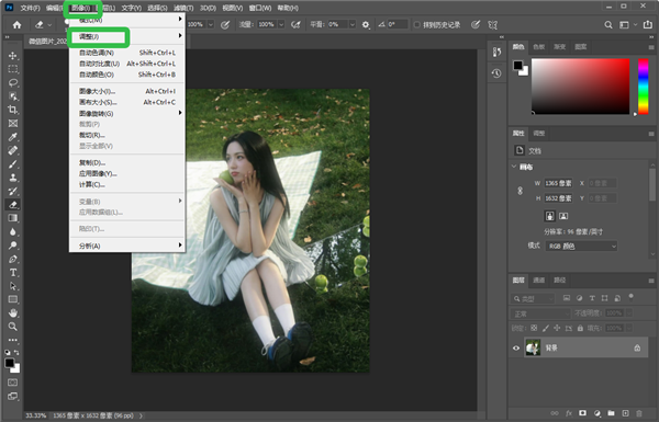 2、点击【图像】,选择【调整】。