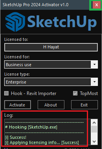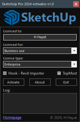 4、返回解压文件夹打开SketchUp_Pro_2024_Activator_v1.0-H Hayat,打开里面的程序点“Activate”按钮