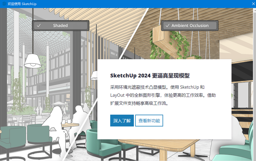 SketchUp Pro2024升级了全新的图形引擎,允许您利用新兴的硬件和软件技术,使您的建模体验更加流畅,新的风格设置、Trimble连接和链接共享、添加的位置、IFC输和输出优化,可以帮助用户更好的操作使用!
