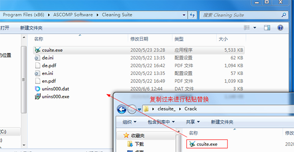 6、将Crack夹中csuite.exe文件复制到安装目录下进行粘贴替换即可
