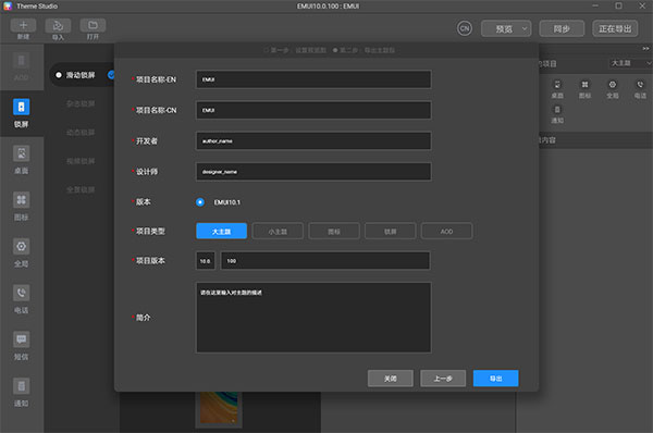 所有的模块都制作完成后,将华为手机连接电脑,并打开手机中的USB调试。点击菜单栏中的“同步”,将正在编辑的主题同步至手机中。同步成功后需要在主题App中,选择同步的主题进行应用。