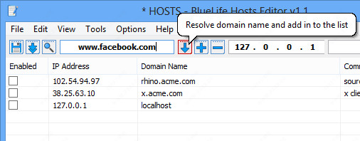 1、BlueLife Hosts Editor操作非常简单,只需输入您想添加和使用的主机名“解析域名并添加到列表中“按钮