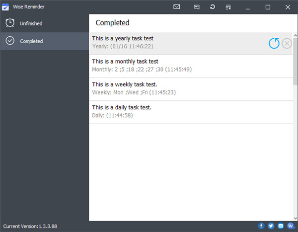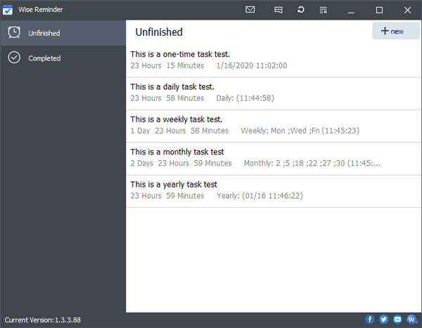 启动 Wise Reminder 后,将显示主屏幕。从左侧,您可以查看已完成和未完成的事件。