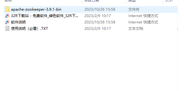 1、下载完最新zookeeper 3.9.1稳定版本后,解压下载的压缩包。如下图所示: