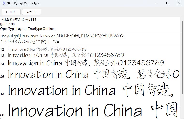 4、字体安装成功,图中就是安装的字体文件