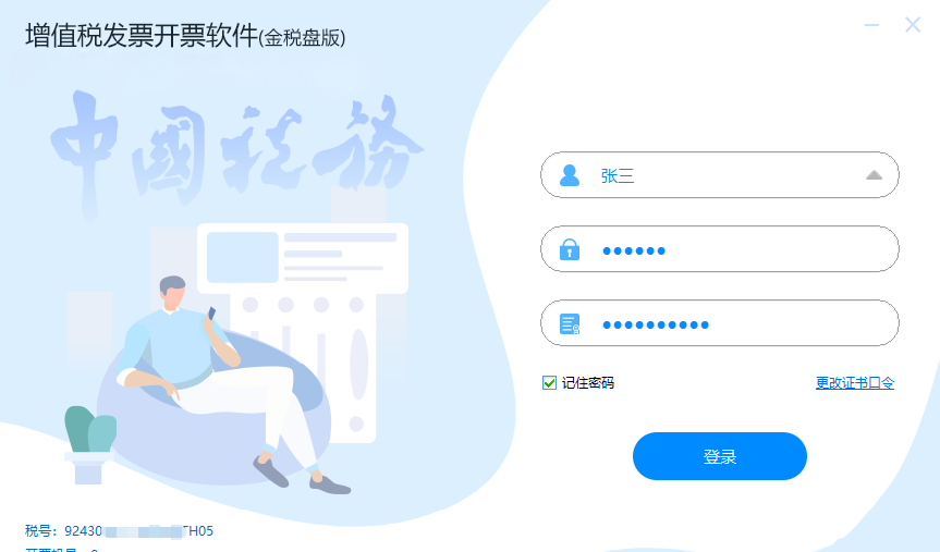 3、证书口令修改成功后,软件提示重新登录。再次输入管理员密码和修改后的证书口令,并在“记住密码”前打勾,可免除以后登录时输入密码步骤,输入完成后单击【登录】