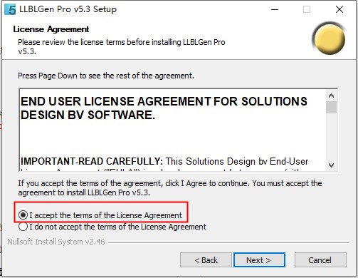 2、双击“LLBLGenPro-v5110-Full-setup.exe”开始安装软件,阅读并同意安装协议后,点击next