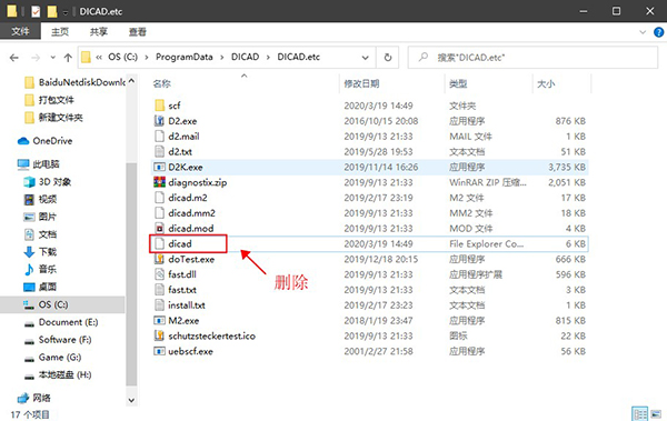 4、删除下面文件夹中的dicad文件(没有后缀)
