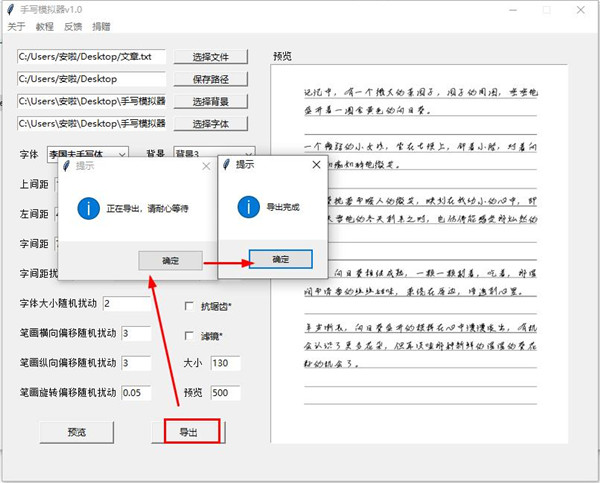 【预览】:预览的字数,默认值为500,可手动修改,请不要设置过多避免预览时间过长。若预览的字数超过一页,最终只会预览出第一页。预览得到的图片会保存在保存路径内,并显示在【预览栏】中。