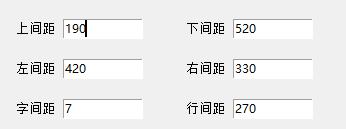 【普通值】:大小即手写字的大小(越大分辨率越高)。间距值,包括文字距上下左右边框的距离、字与字的距离、行与行之间的距离。